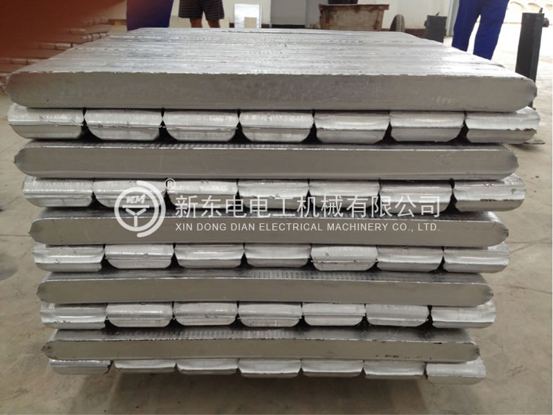 熔化的鋁液從保溫爐經流槽流入上澆煲,重力控制的浮動塞頭控制流入下澆煲的鋁液流量,鋁液從下澆煲水平澆鑄到由結晶輪和封閉鋼帶所形成的模腔內,結晶輪的截面為H型,四面冷卻保證鑄錠結晶致密且均勻。內外冷卻和側冷卻可方便地從結晶輪中轉出,便于冷卻水調節和設備維護;所有噴嘴均為不銹鋼。設有冷卻水壓力表顯示,鋼帶漲緊為氣動漲緊(可調節)。結晶輪的支承軸上裝有內冷卻裝置,通過壓力為0.2—0.5MPa的冷卻水,冷卻水通過噴嘴射到結晶輪的內表面上,內冷卻共分4區間水冷,外冷卻共分4區間水冷,內外側冷卻各為2個區間,從而使鋁液逐漸冷卻并凝固成為鋁鑄錠。